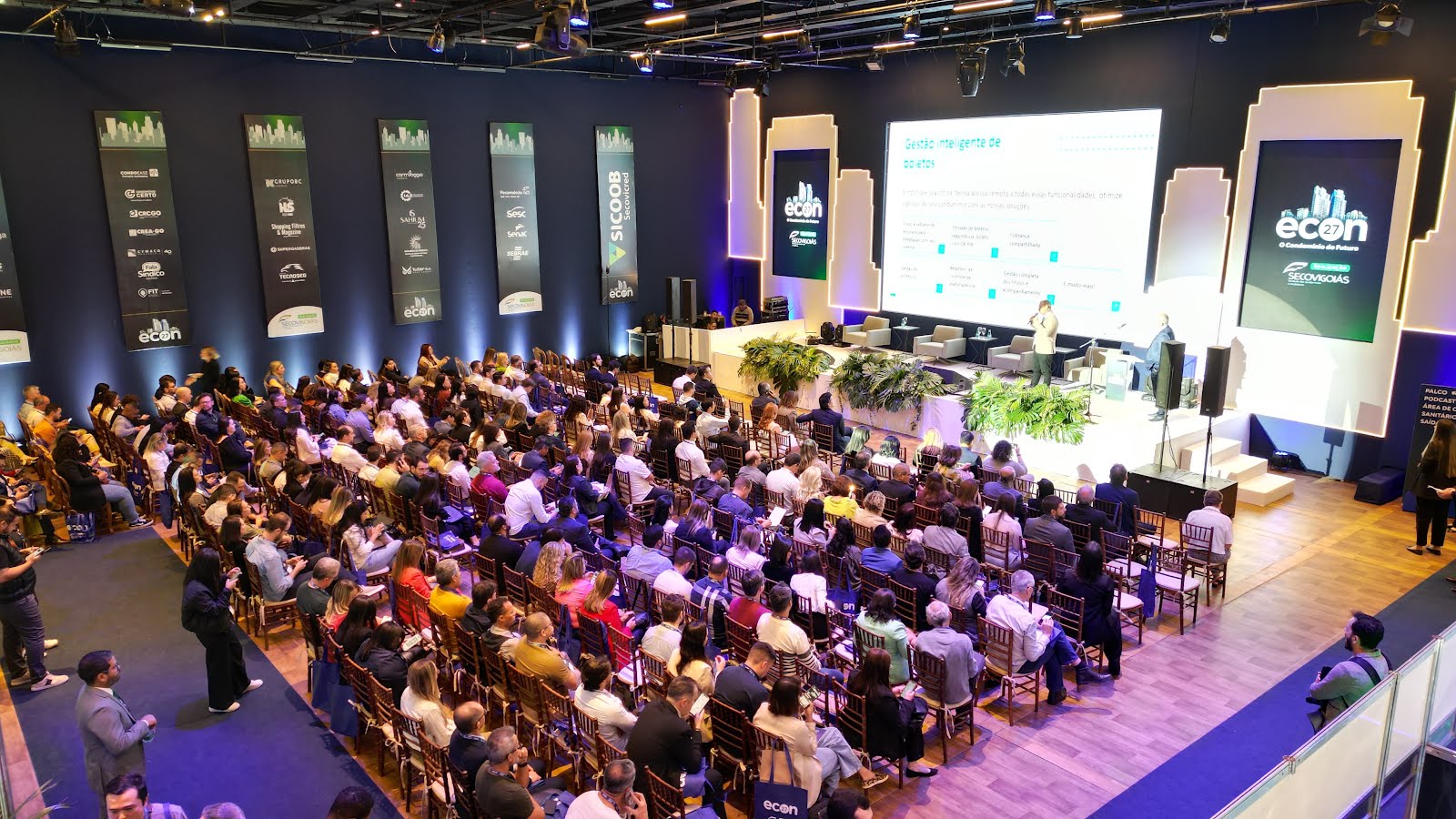 "Como a gestão inteligente transforma a convivência e a eficiência" foi tema do 27º Encontro de Condomínios de Goiás (Econ). Voltado para síndicos, conselheiros, administradores, advogados, contadores e outros profissionais da gestão condominial, o evento também tratou de temas como reforma tributária, com os convidados Rodrigo Dias, membro da Câmara Brasileira de Indústria da Construção (CBIC) e do SecoviSP e com o auditor de tributos fiscais da Prefeitura de Goiânia, Lucas Morais. O escritor, palestrante e especialista em tecnologia e inovação Marcos Piangers, por sua vez, falou sobre o futuro da convivência urbana.